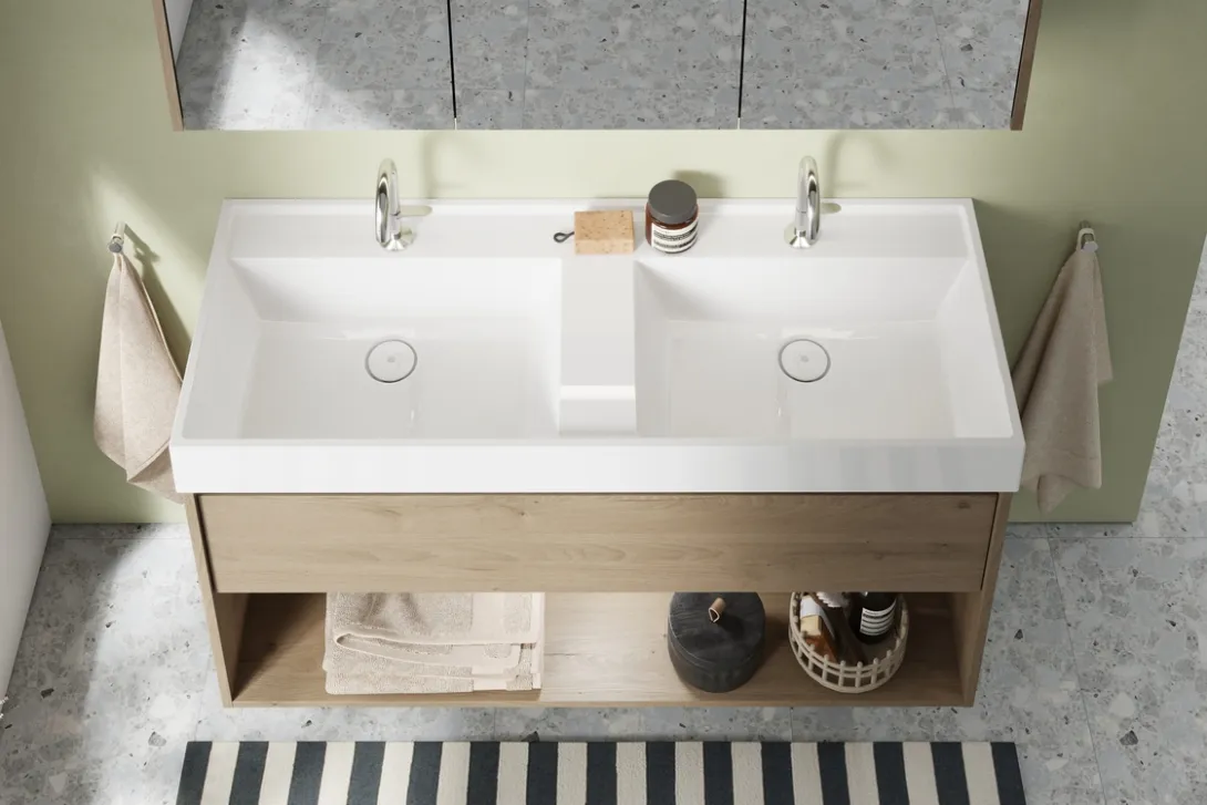Dank kompakter Maße und trotzdem genügendem Stauraum eignet sich Devio besonders für kleinere Badezimmer oder schmale Grundrisse. Für Gästebäder stehen besonders platzsparende Lösungen zur Verfügung, die auch auf kleiner Fläche ein stimmiges Gesamtbild schaffen.