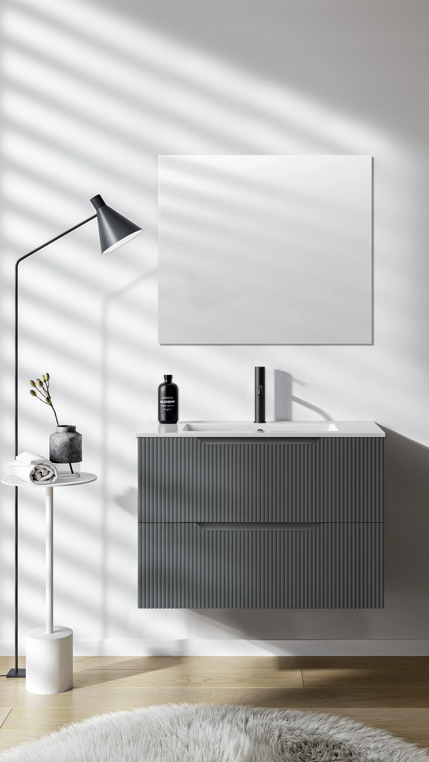 Die Badmöbelserie .Bravo verleiht dem Badezimmer mit seiner markanten geriffelten Frontstruktur und den grafisch integrierten Griffmulden einen einzigartigen Charakter. Eine Serie, die modernes Design mit hoher Alltagstauglichkeit verbindet.