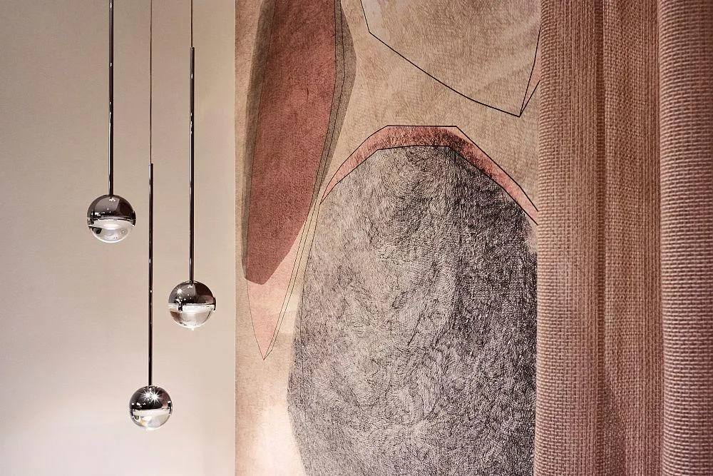 Auch die Whirlwanne aus Mineralwerkstoff mit beleuchteter Ablage ist eine Sonderanfertigung von Mauersberger – schön illuminiert durch 3 Pendelleuchten Convivio von Cini&Nils und dezent spritzwassergeschützt ‚bebildert‘ durch eine Wet-Motiv-Tapete von wall&deco. Das sanfte Sprudeln hilft beim Abbau von Stress, löst Verspannungen und fördert die Durchblutung. Die Wanne setzt damit den idealen Schlusspunkt für ein Wellness-Badezimmer der Extraklasse.